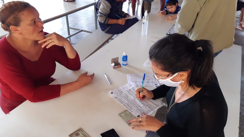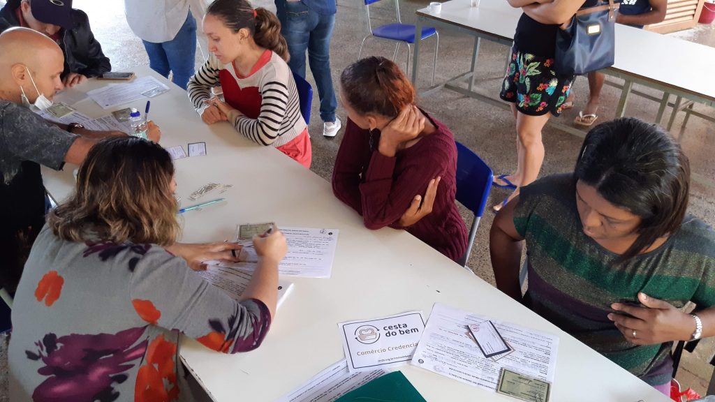 Abaixo imagens de famílias sendo cadastradas para receber cesta de alimentos: